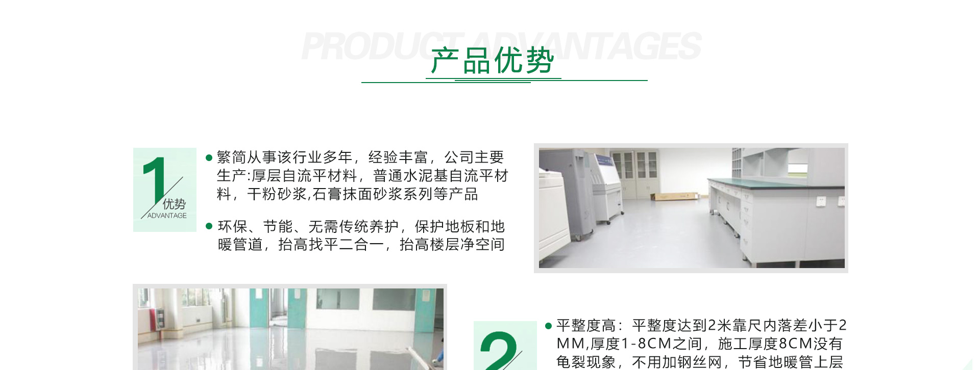 繁簡新型建材有限公司是集科研開發,生產銷售,技術施工為一體的高科技企業,下屬于山東新大地實業集團。總公司位于山東濟南,生產基地主要遍布肥城,禹城,德州,威海,武漢,鄭州,成都,蕪湖等各大城市。公司擁有固定資產三億元,占地面積12萬平方米,建筑面積六萬平方米,是國家發展建筑節能基地,山東省建筑節能企業。中國地坪材料分會理事單位,中國地坪體系單位,中國彈性地板有名企業。繁簡建材坐落于安徽繁昌經濟開發區,公司主要銷售范圍為:自流平水泥,地暖回填材料,瓷磚粘合劑,透水增強劑,干粉砂漿。施工范圍:為各種地面找平,pvc塑膠地板,復古地坪,透水地坪等。公司依靠優良的產品質量,優良的服務,適中的價格贏得了廣大客戶的信任,公司有自己自主的研發和生產施工隊伍。定期參加系統培訓,以高于行業的標準服務于廣大客戶!展望未來,繁簡新型建材有限公司本著:“產品保證,用戶至上”的宗旨將攜手業內同行,不斷創新,勇攀高峰,打...